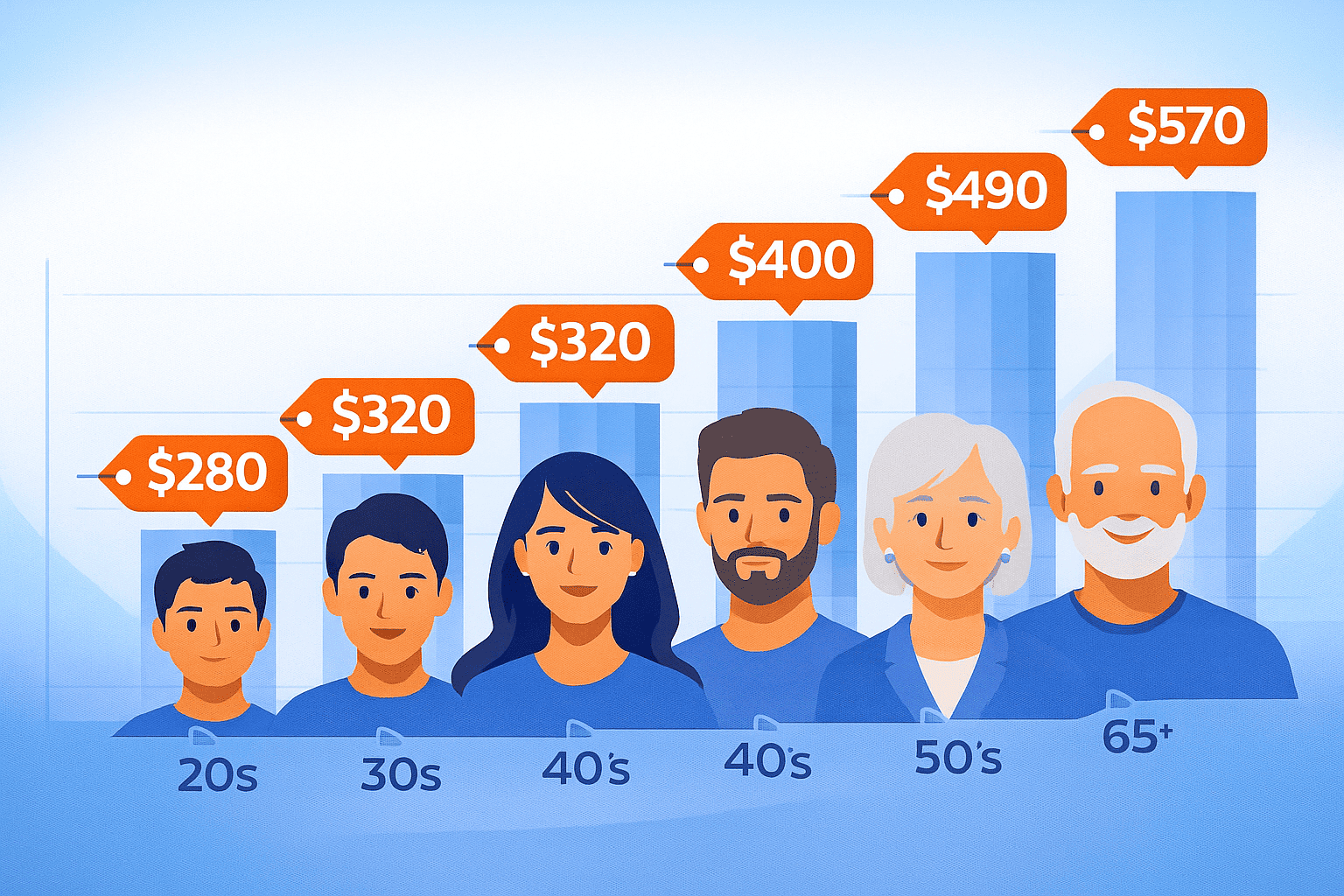 | 26–34 | $320 – $450/month | $75 – $200/month |